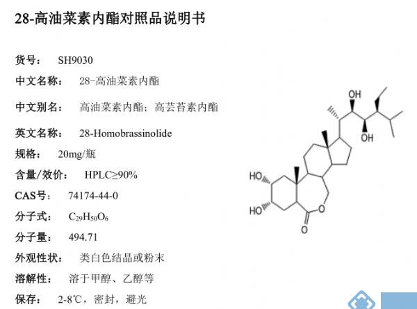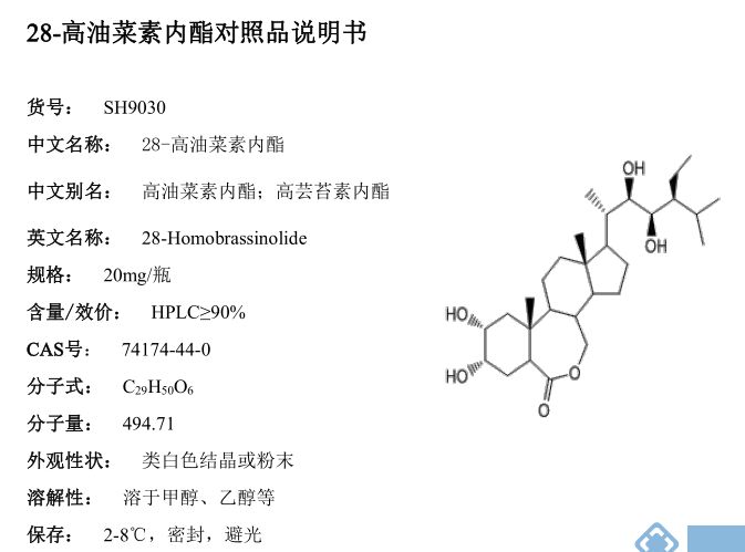 产品名称: 28-Homobrassinolide;28-高油菜素内酯/高芸苔素内酯