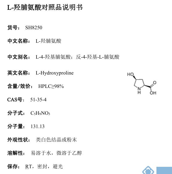 产品名称: L-Hydroxyproline;L-羟脯氨酸
